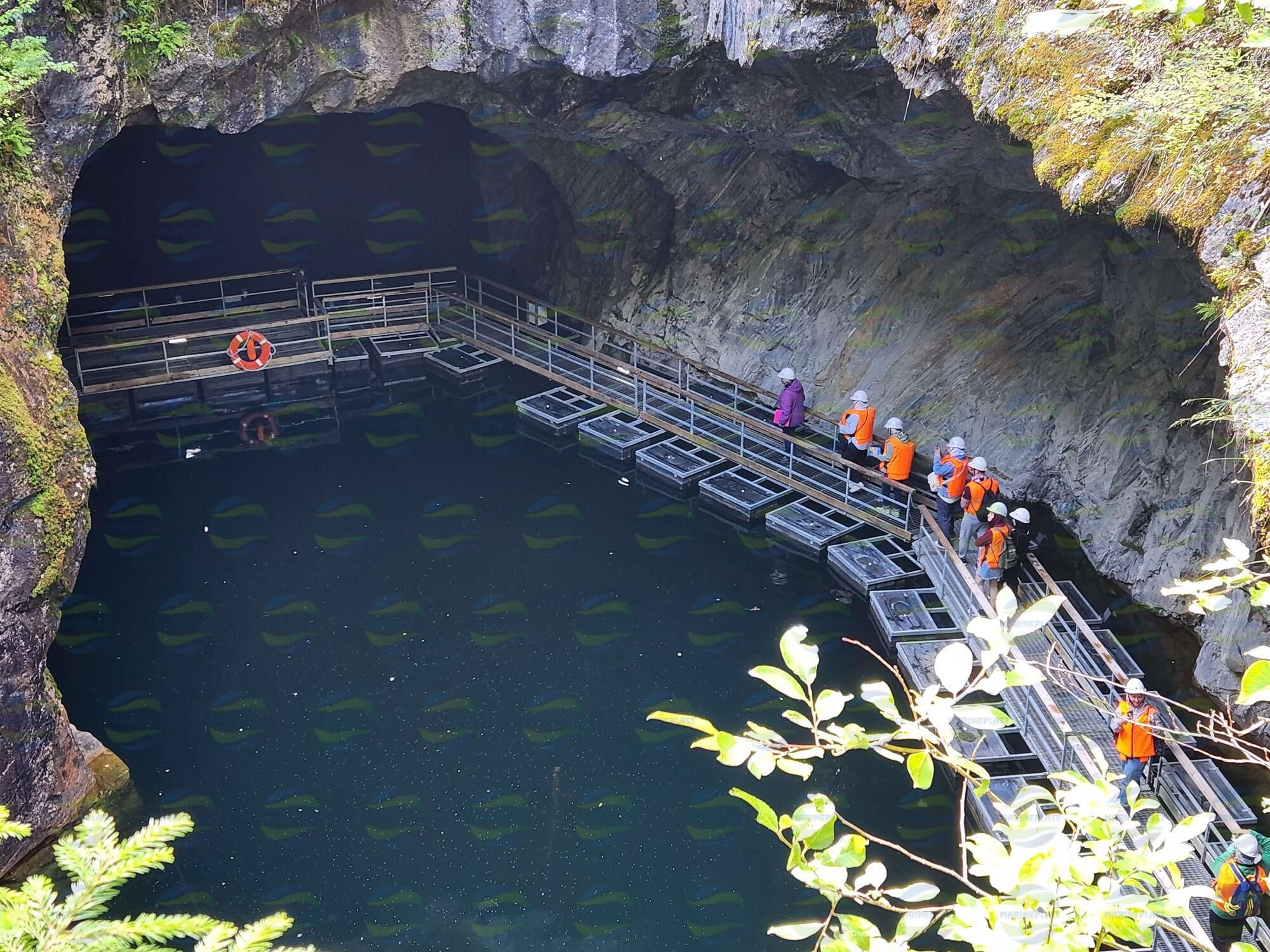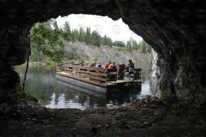 Инновации для подземного мира: маршрут «Подземная Рускеала». Чтобы открыть доступ к тайнам затопленных выработок, была разработана специальная дорожка из понтонов в Большом мраморном зале.