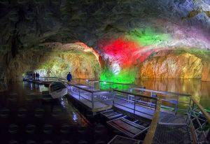 Завершает подземную экскурсию водная прогулка на самоходном пассажирском понтоне, позволяющая с нового ракурса оценить масштаб и величественность каньона.