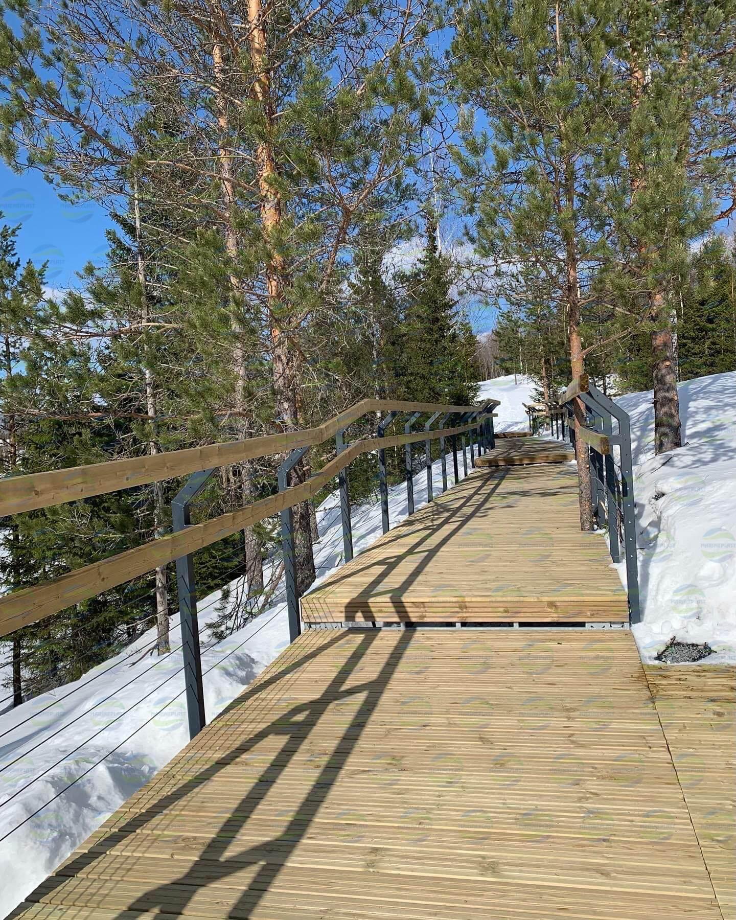 - Сеть деревянных дорожек и лестниц, ведущих по самым живописным береговым линиям и крутым склонам. Конструкции из импрегнированной хвойной древесины на стальном каркасе устойчивы к капризам северного климата и гарантируют безопасность.