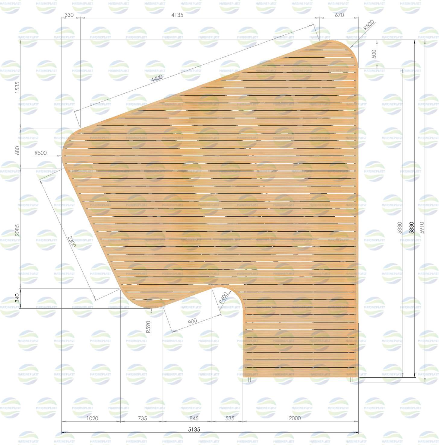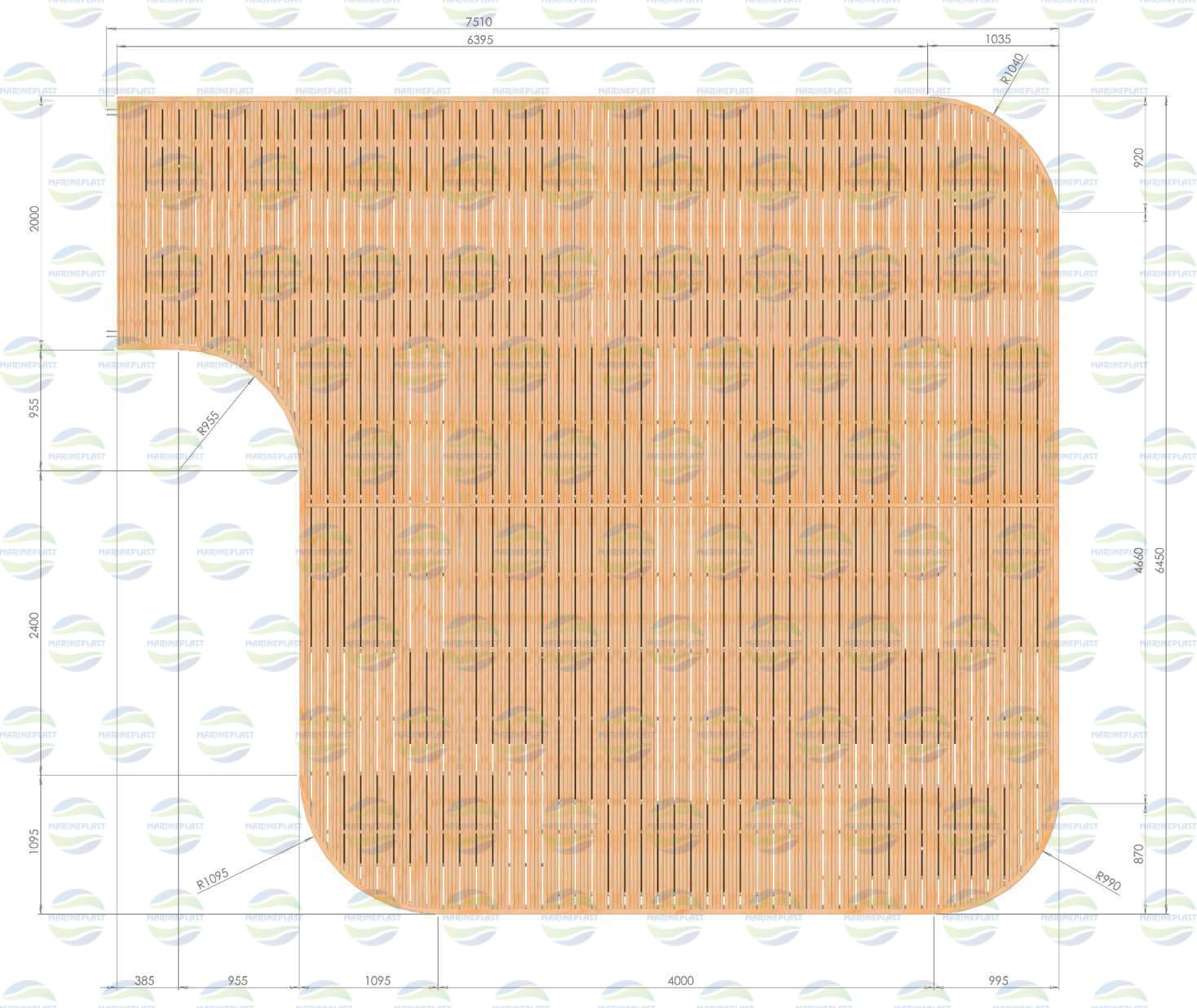 - Палубное покрытие — сборный щитовой настил с противоскользящей насечкой для безопасности.