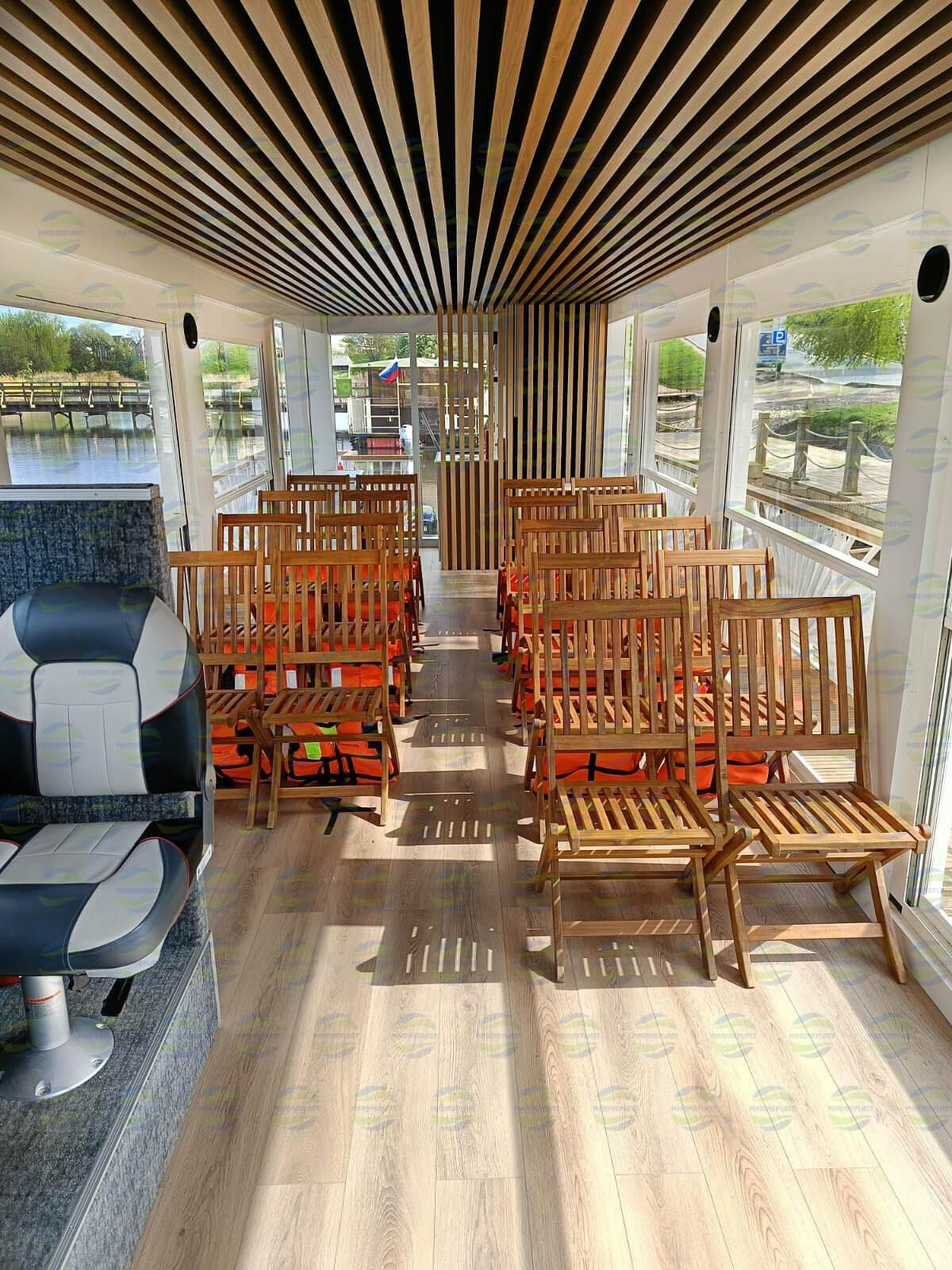 В отличие от классических судов, данная понтонная конструкция предлагает два принципиальных преимущества: максимальную устойчивость на воде и крайне малую осадку. Это позволяет заходить на «недоступные» для других катеров отмели и обеспечивает гостям непревзойдённый комфорт без неприятной бортовой качки.