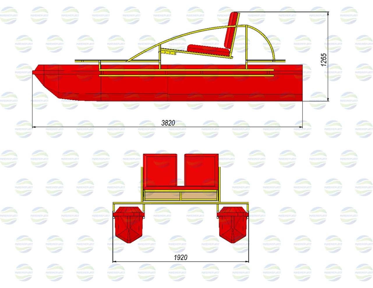 Катамаран вмещает двух пассажиров и подлежит эксплуатации на водоемах с расчетной высотой волны 0,5 м при удалении от берега до 1,6 миль.