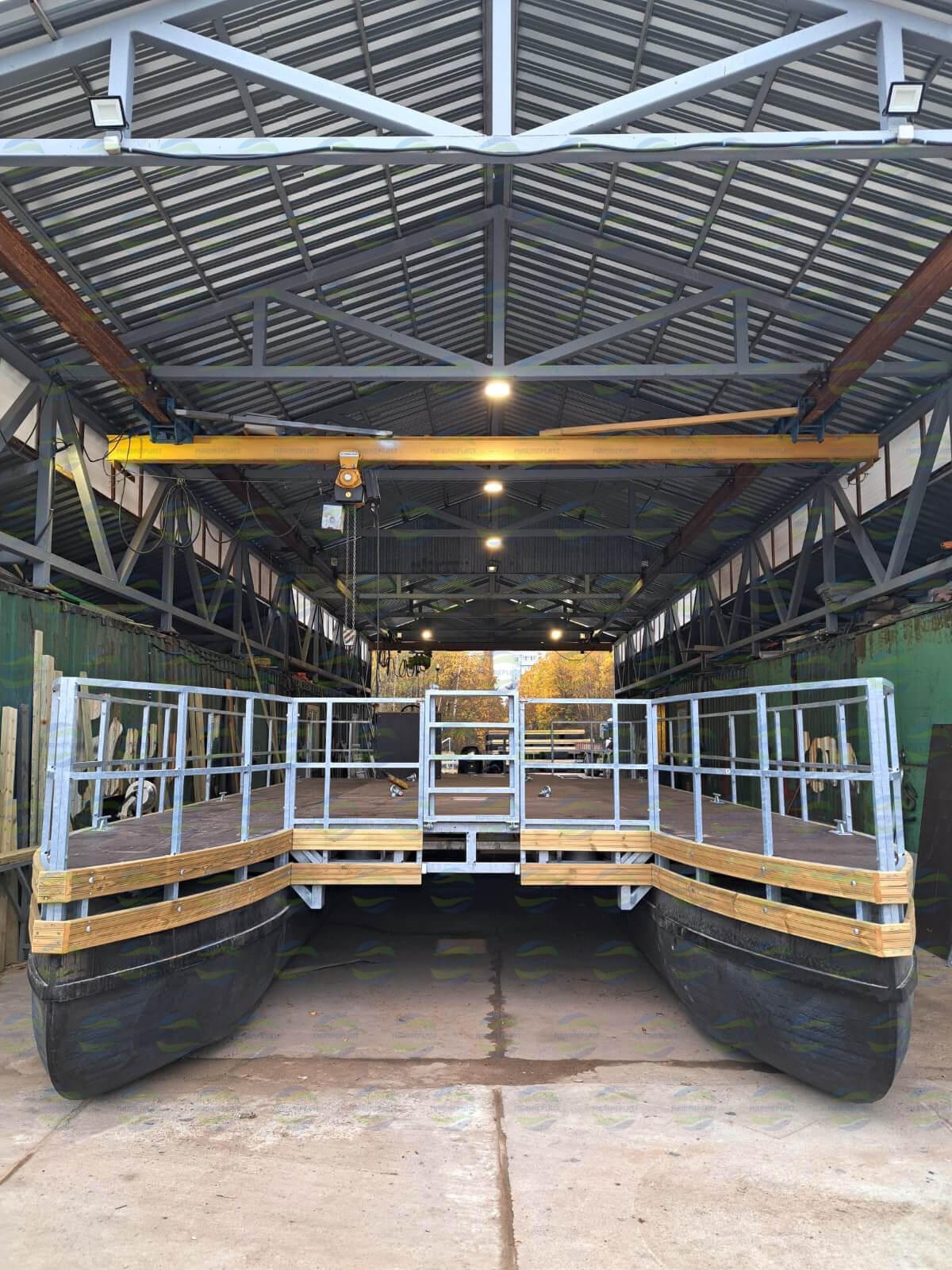 Уникальный складной понтонный рабочий катер «TRANSWATER-40» — авторская разработка конструкторов «Маринпласт». Он предназначен для выполнения задач по перевозке людей, доставке грузов, обеспечения водолазных спусков, выполнения грузоподъемных, ремонтных и профилактических работ с помощью установленного инженерно–технического оборудования. Будет полезен при проведении ремонта судов с воды, транспортировке инвентаря и персонала на удаленные места акватории.