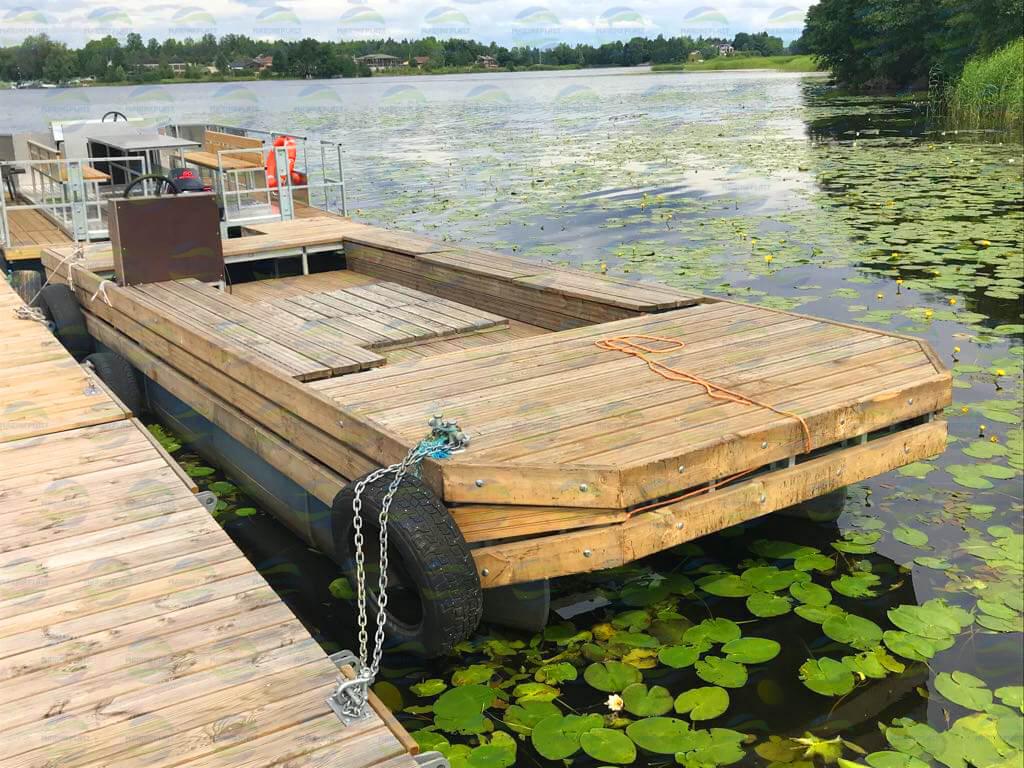 Рабочий понтон предназначен для выполнения широкого спектра операций на воде: транспортировка техники и снаряжения, перемещение элементов плавучих причальных конструкций, установка якорных креплений для плавающих пирсов, проведение ремонтных мероприятий по обслуживанию судов непосредственно на воде.